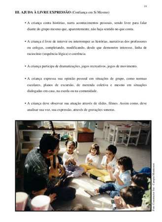 Neste volume é apresentado o processo que a criança vivencia do nascimento aos seis anos de idade, em média, através de fundamentação teórica e atividades obedecendo ao seguinte esquema: